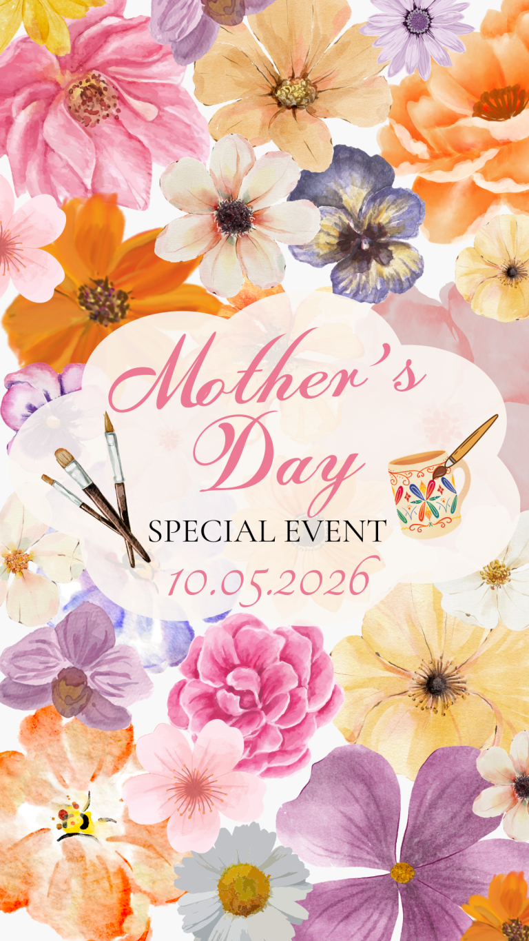 Erlebe Muttertag kreativ und gemütlich: Bemalt Special Keramik wie Herz-Teller, Love-Mugs oder Schüsseln in Herz-Motiven, genieße ein Stück hausgemachten Muttertags Special Cake sowie zwei Getränke im passenden Theme, egal ob Mocktails, Matcha-Variationen oder Softdrinks.